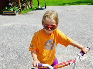 My cousin, Willow, rocking my sunglasses on her speedy fast bike! |